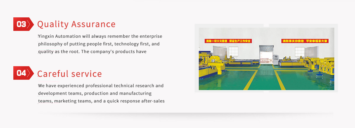 Foshan Yingxin Automation Equipment Co., Ltd., located in Sanshui District, Guangdong Province, is a high-tech enterprise committed to manufacturing production equipment for the aluminum profile industry, integrating product research and development, production, sales and service. With the development of the enterprise and the demand of domestic and foreign markets, it introduces foreign high-end technology as the core and advanced equipment, and builds aluminum machinery equipment that has won praise from all walks of life in the same industry.